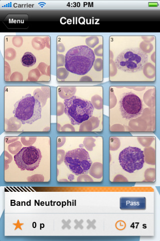 CellAtlas features short descriptions and key findings of the various cells in the blood. They cover the normal and abnormal forms of RBCs (erythrocytes), cell stages involved in the development and maturation of of RBCs, WBCs (leukocytes) and platelets (thrombocytes). - Second, is CellQuiz